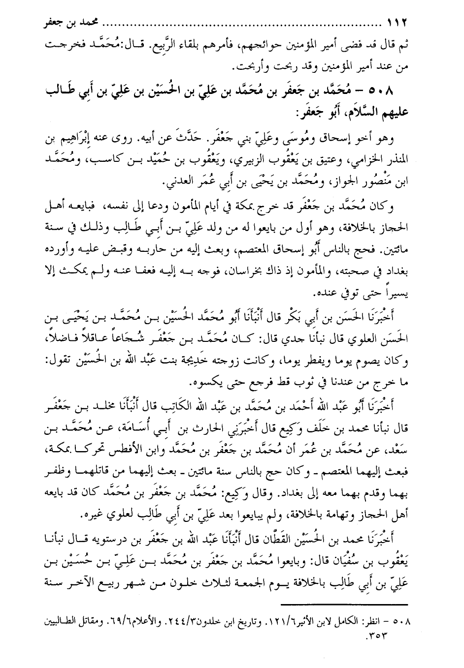 508- محمد بْنُ جَعْفَر بْنِ مُحَمَّدِ بْنِ عَلِيّ بْنِ الْحُسَيْن بن علي بن أبي طالب عليهم السّلام، أبو جعفر [1] :