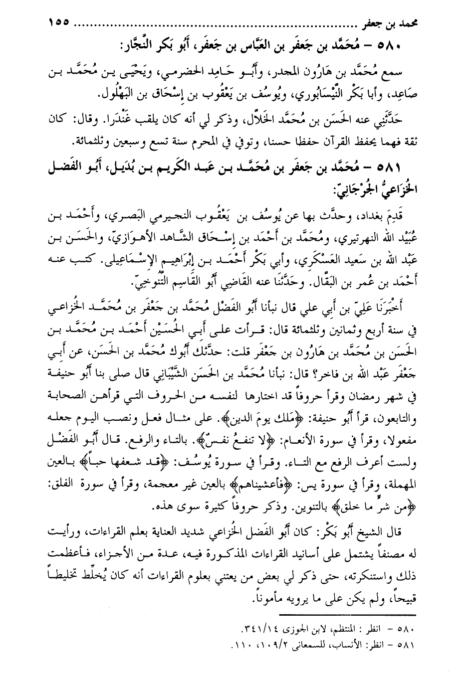 580- محمد بن جعفر بن العباس بن جعفر، أبو بكر النجار [1] :
