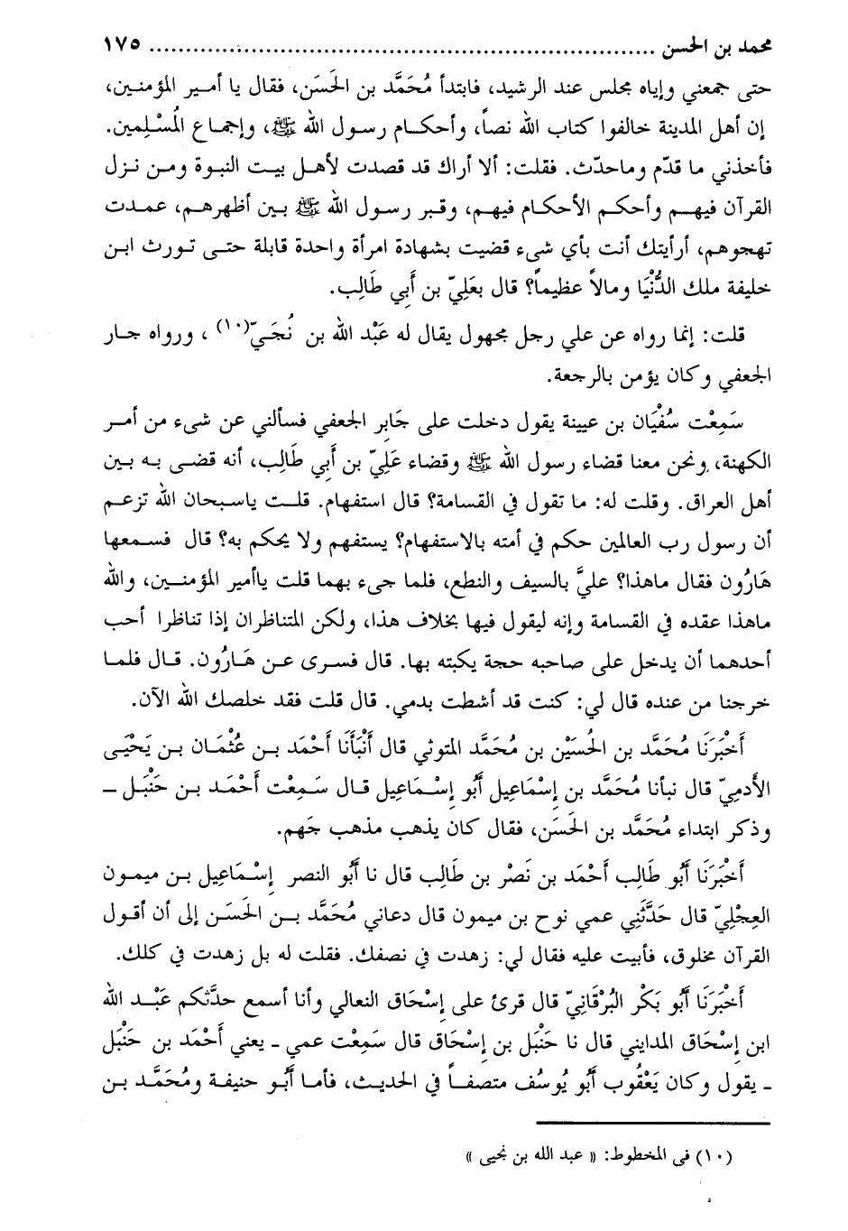 حتى جمعني وإياه مجلس عند الرشيد، فابتدأ محمد بن الحسن، فقال يا أمير المؤمنين، إن أهل المدينة خالفوا كتاب الله نصا، وأحكام رسول الله صَلَّى اللَّهُ عَلَيْهِ وَسَلَّمَ، وإجماع المسلمين.