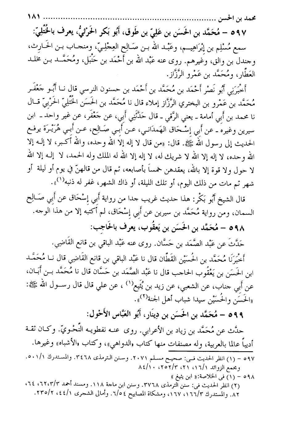 598- محمد بن الحسن بن يعقوب، يعرف بالحاجب: