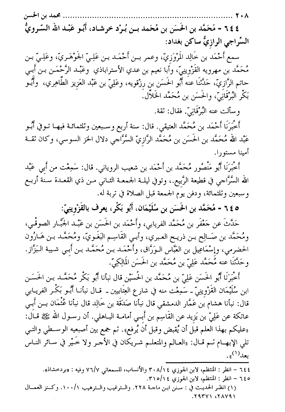 644- محمّد بن الحسن بن محمد بن بردخرشاد، أبو عبد الله السروي السراجي الرازي ساكن بغداد [1] :