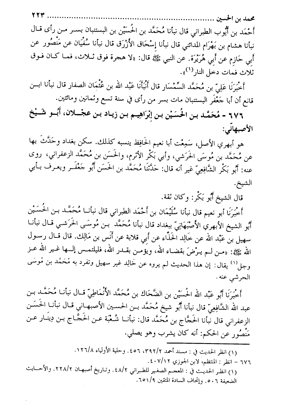 676- محمد بن الحسين بن إبراهيم بن زياد بن عجلان، أبو شيخ الأصبهانيّ [2] :