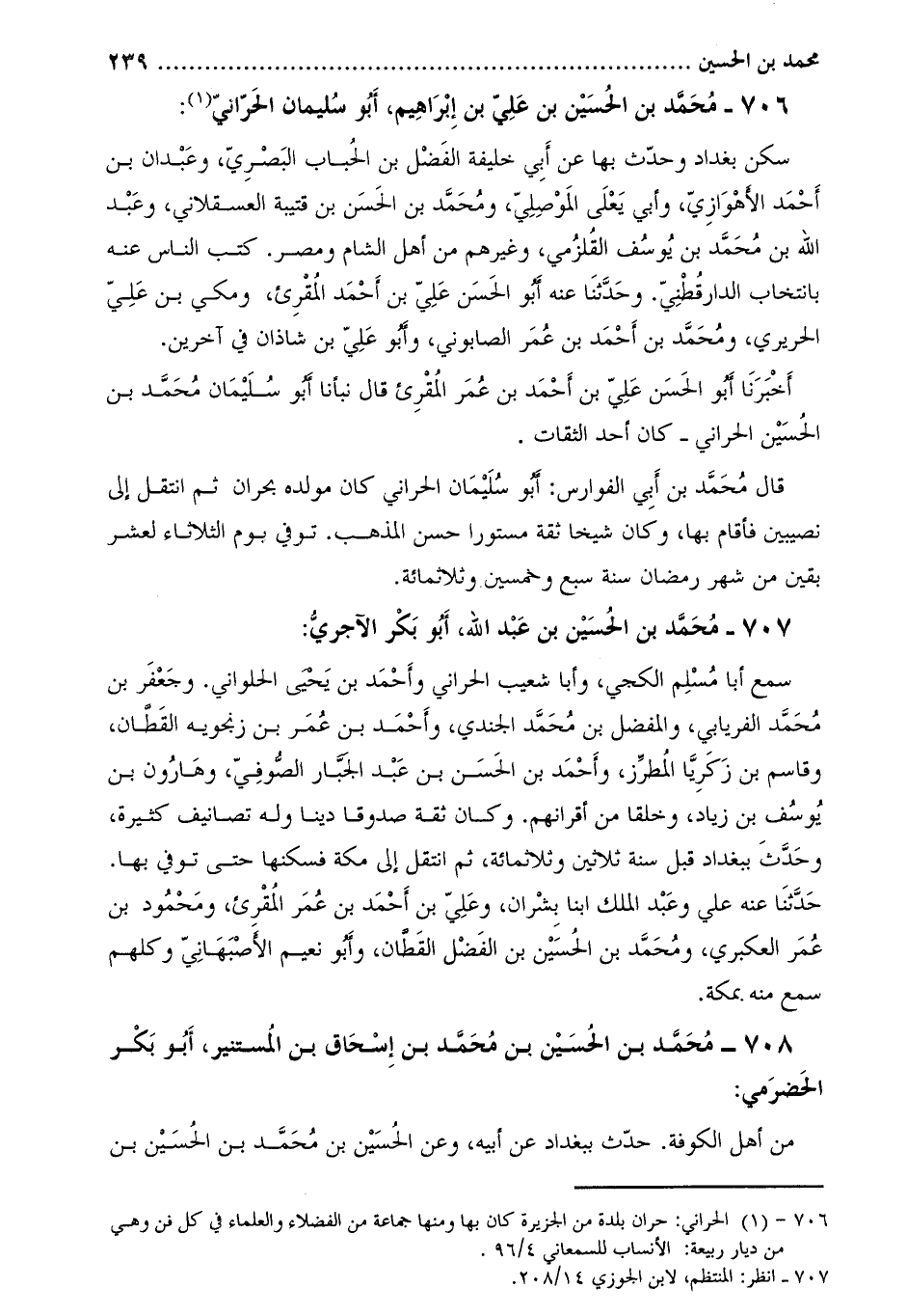 706- مُحَمَّدِ بْنِ الْحُسَيْنِ بن علي بن إبراهيم، أبو سليمان الحراني [1] :