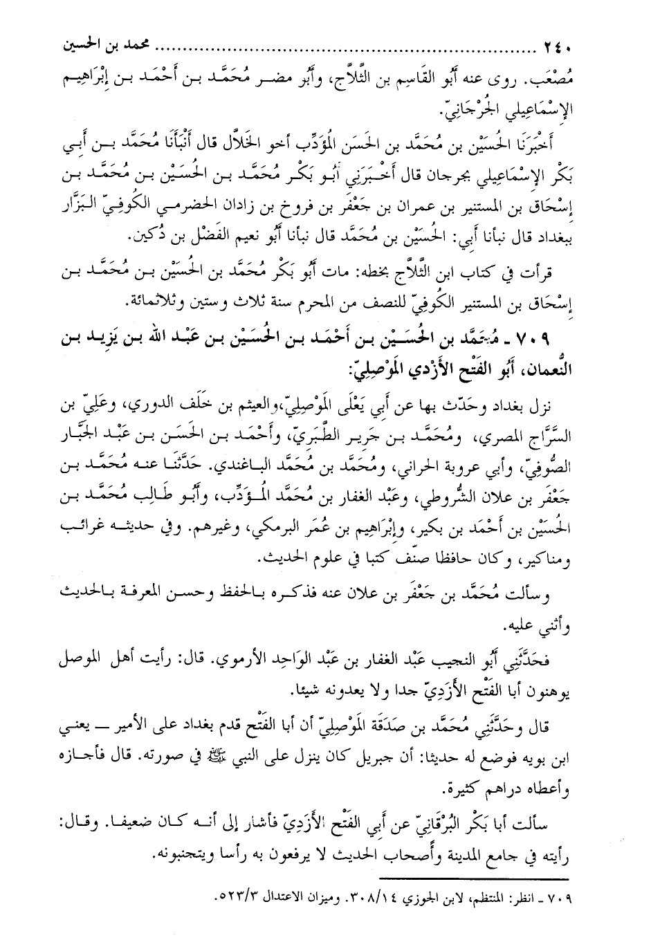 709- محمد بْن الْحُسَيْن بْن أَحْمَد بْن الْحُسَيْن بْن عَبْد اللَّه بْن يزيد بن النعمان، أبو الفتح الأزدي الموصلي [1] :