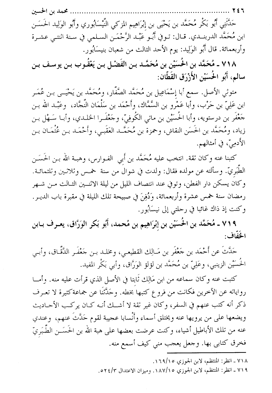 [2] 719- انظر: المنتظم، لابن الجوزي 15/187. وميزان الاعتدال 3/524.