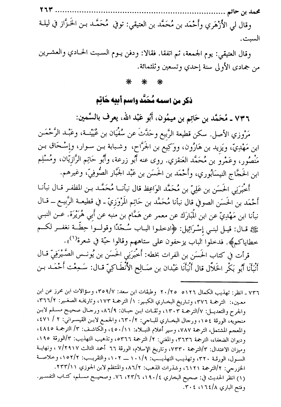 ذكر من اسمه محمد واسم أبيه حاتم