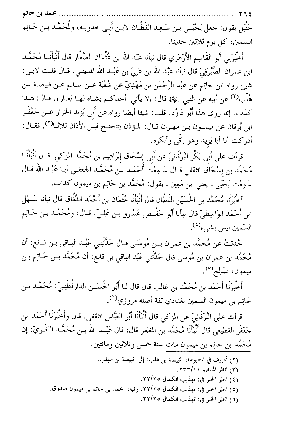 [4] انظر الخبر في: تهذيب الكمال 25/22. وفيه: محمد بن حاتم بن ميمون صدوق.