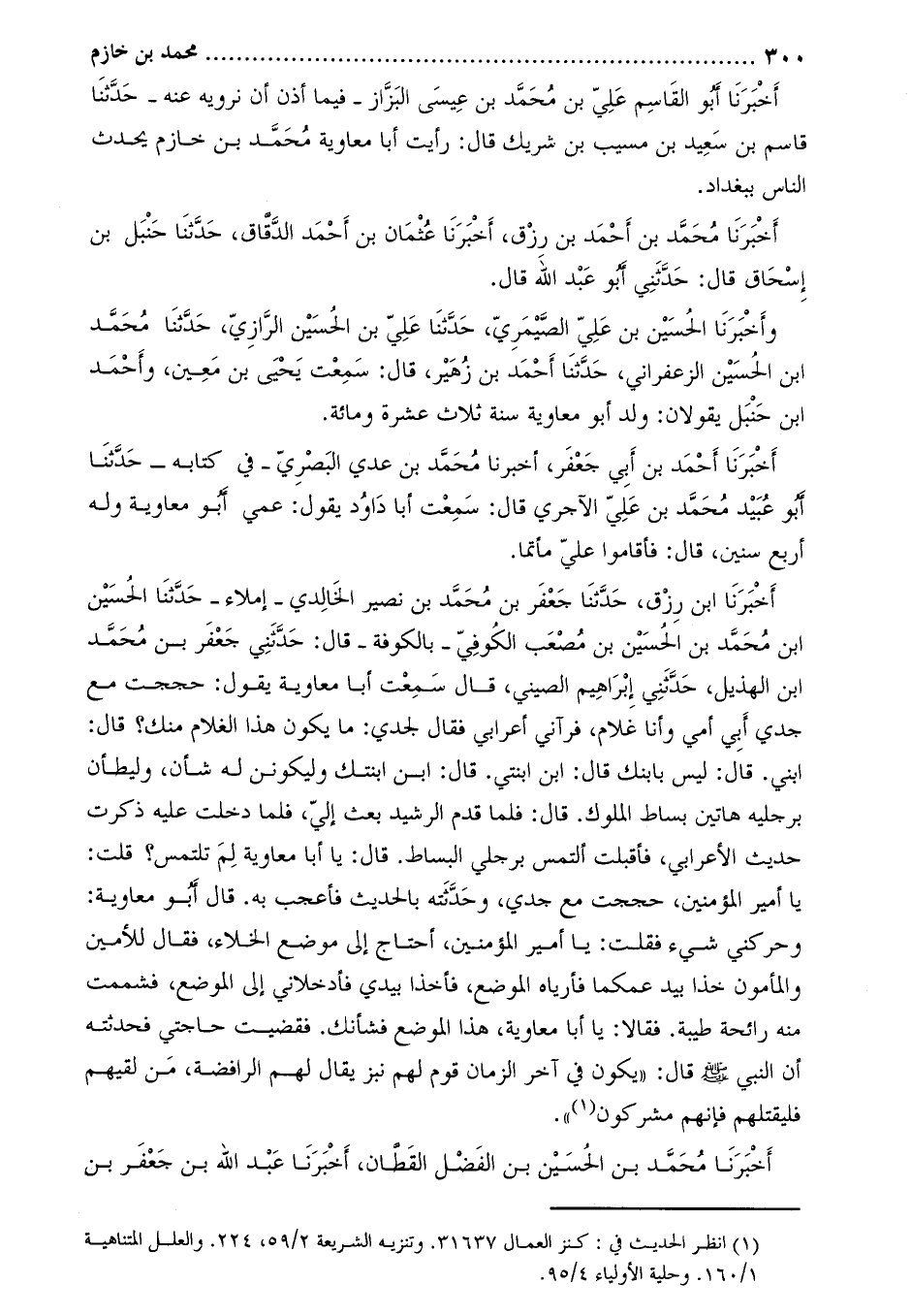 [1] انظر الحديث في: كنز العمال 31637. وتنزيه الشريعة 2/59، 224. والعلل المتناهية 1/160. وحلية الأولياء 4/95.