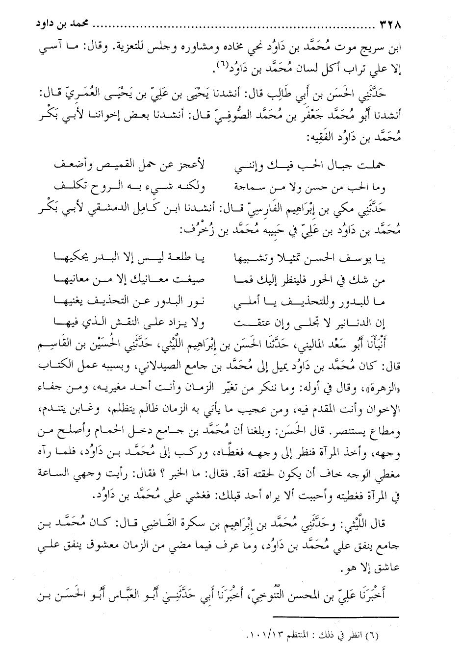 حَدَّثَنِي مكي بن إبراهيم الفارسي قَالَ: أنشدنا ابن كامل الدمشقي لأبي بكر محمد بن داود بن علي في حبيبه محمد بن زخرف: