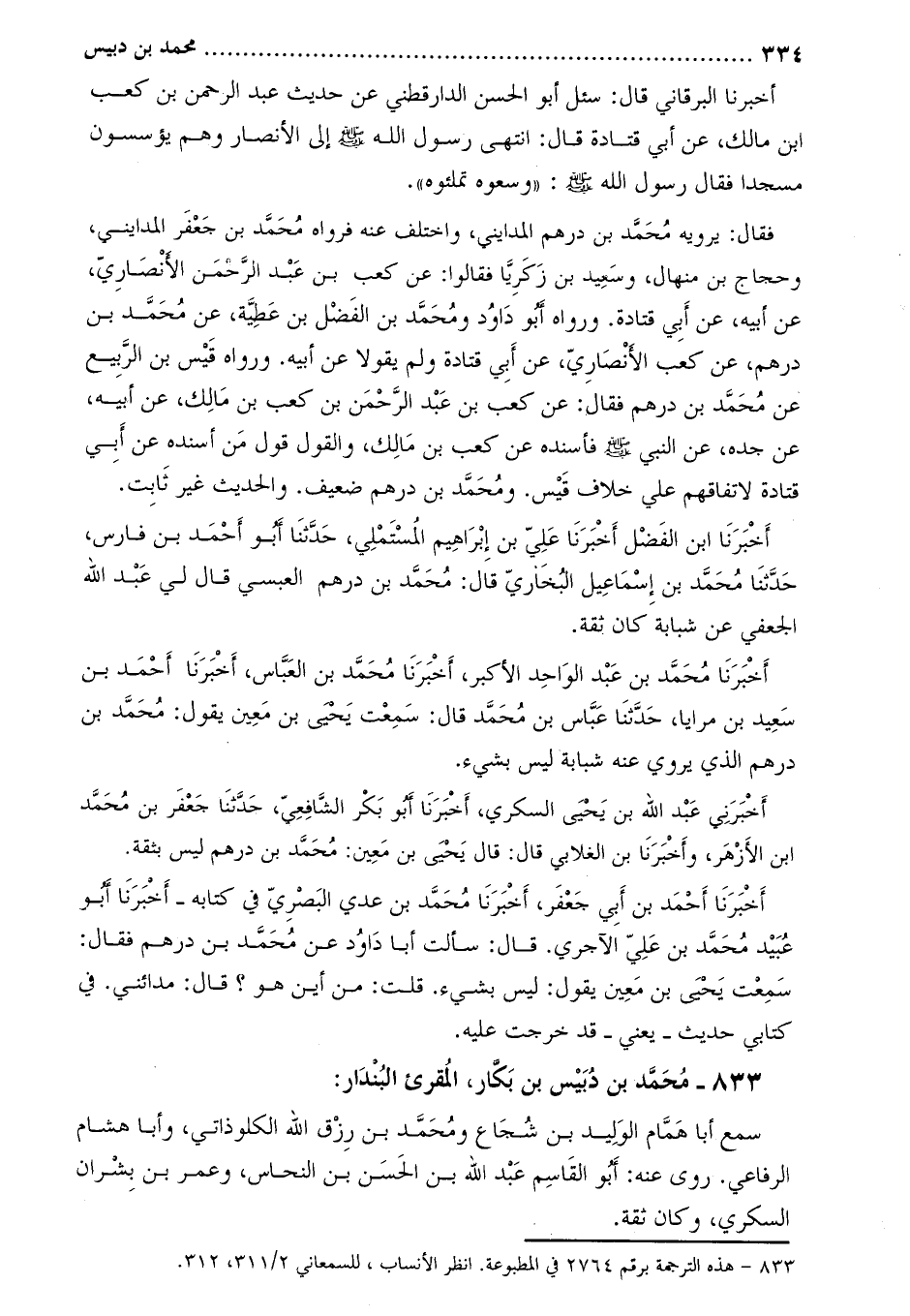 [1] 833- هذه الترجمة برقم 2764 في المطبوعة. انظر الأنساب، للسمعاني 2/311، 312.
