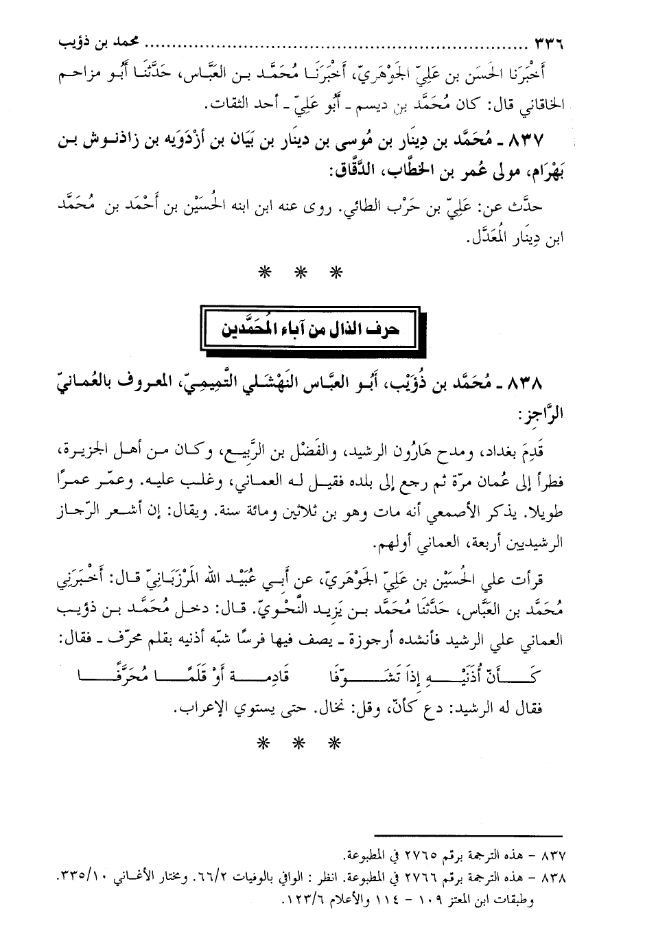 838- محمد بن ذؤيب، أبو العباس النهشلي التميمي، المعروف بالعماني الراجز [2] :