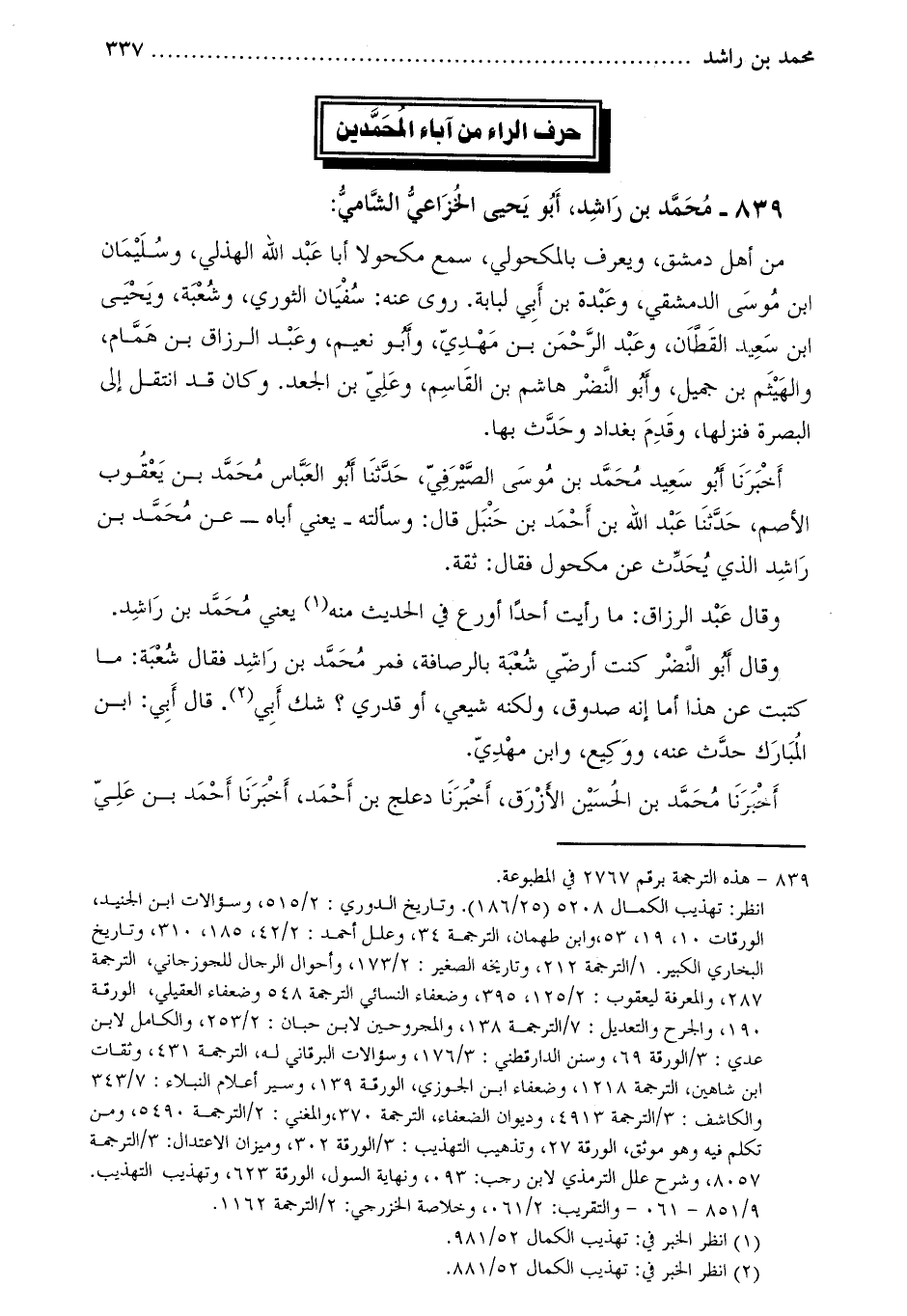 839- محمد بن راشد، أبو يحيى الخزاعي الشامي [1] :