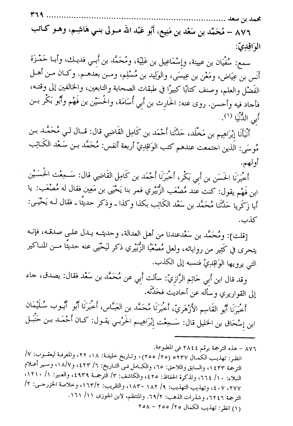 876- محمد بن سعد بن منيع، أبو عبد الله مولى بني هاشم، وهو كاتب الواقدي [1] :