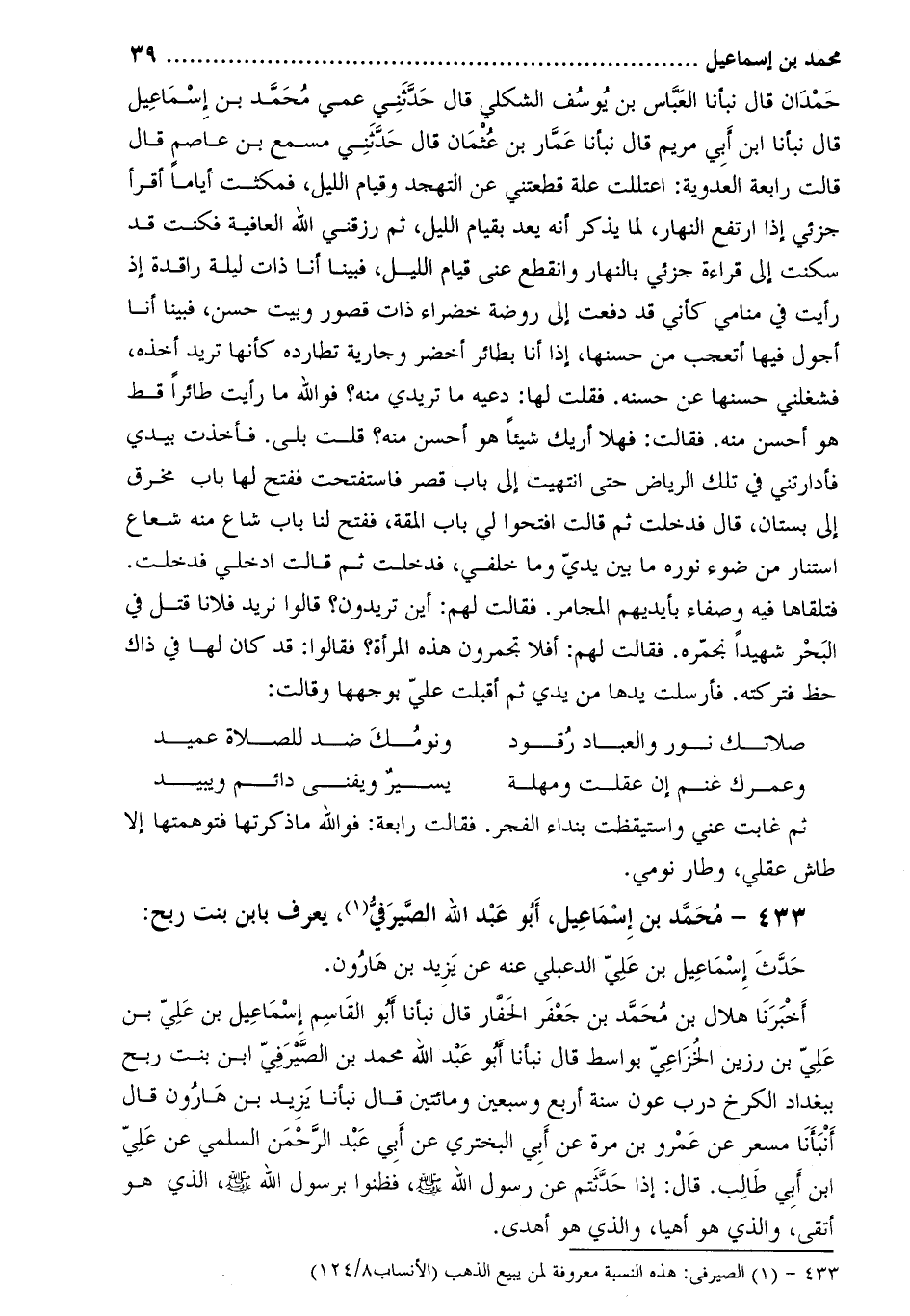 433- محمد بن إسماعيل، أبو عبد الله الصيرفي [1] ، يعرف بابن بنت ربح: