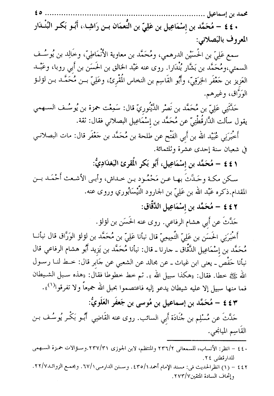 440- مُحَمَّدُ بْنُ إِسْمَاعِيلَ بْنِ عَلِيِّ بْنِ النُّعْمَانِ بن راشد، أبو بكر البندار المعروف بالبصلاني [1] :