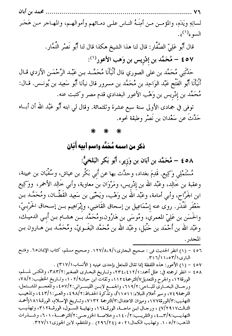 [3] 458- انظر ترجمته في: علل أحمد: 1/412، 234، وتاريخ البخاري الصغير: 2/383، والكنى لمسلم، الورقة 12، والجرح والتعديل 7/الترجمة 1124، وثقات ابن حبان 9/102، وتاريخ الخطيب: 2/78، ورجال البخاري للباجى: 2/619، والجمع لابن القيسراني: 2/457، والمعجم المشتمل، الترجمة 749، وسير أعلام النبلاء: 11511/، وتذكرة الحفاظ: 2/498، والعبر: 1/443، وتذهيب التهذيب: 3/الورقة 177، وميزان الاعتدال: 3/الترجمة 7132، وتاريخ الإسلام، الورقة 181 (أحمد الثالث 2917/7) ، ورجال ابن ماجة، الورقة 16، ونهاية السول، الورقة 312، وتهذيب التهذيب: 9/3- 4، والتقريب: 2/140، وخلاصة الخزرجي: 2/الترجمة 6010، وشذرات الذهب: 2/105. وتهذيب الكمال 5021 (24/296) . والمنتظم، لابن الجوزي 11/327.