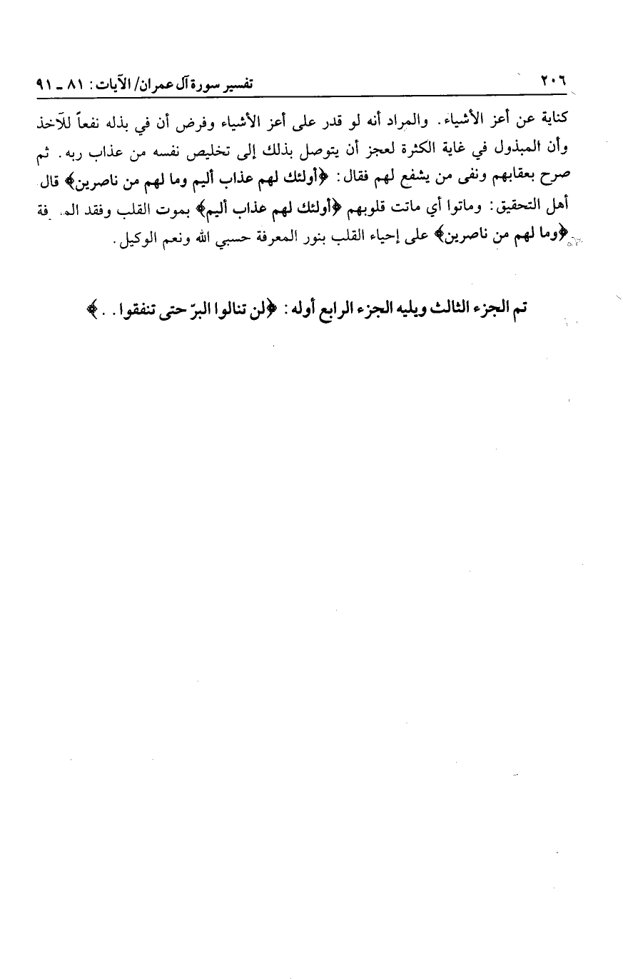 تم الجزء الثالث ويليه الجزء الرابع أوله: لَنْ تَنالُوا الْبِرَّ حَتَّى تُنْفِقُوا ...