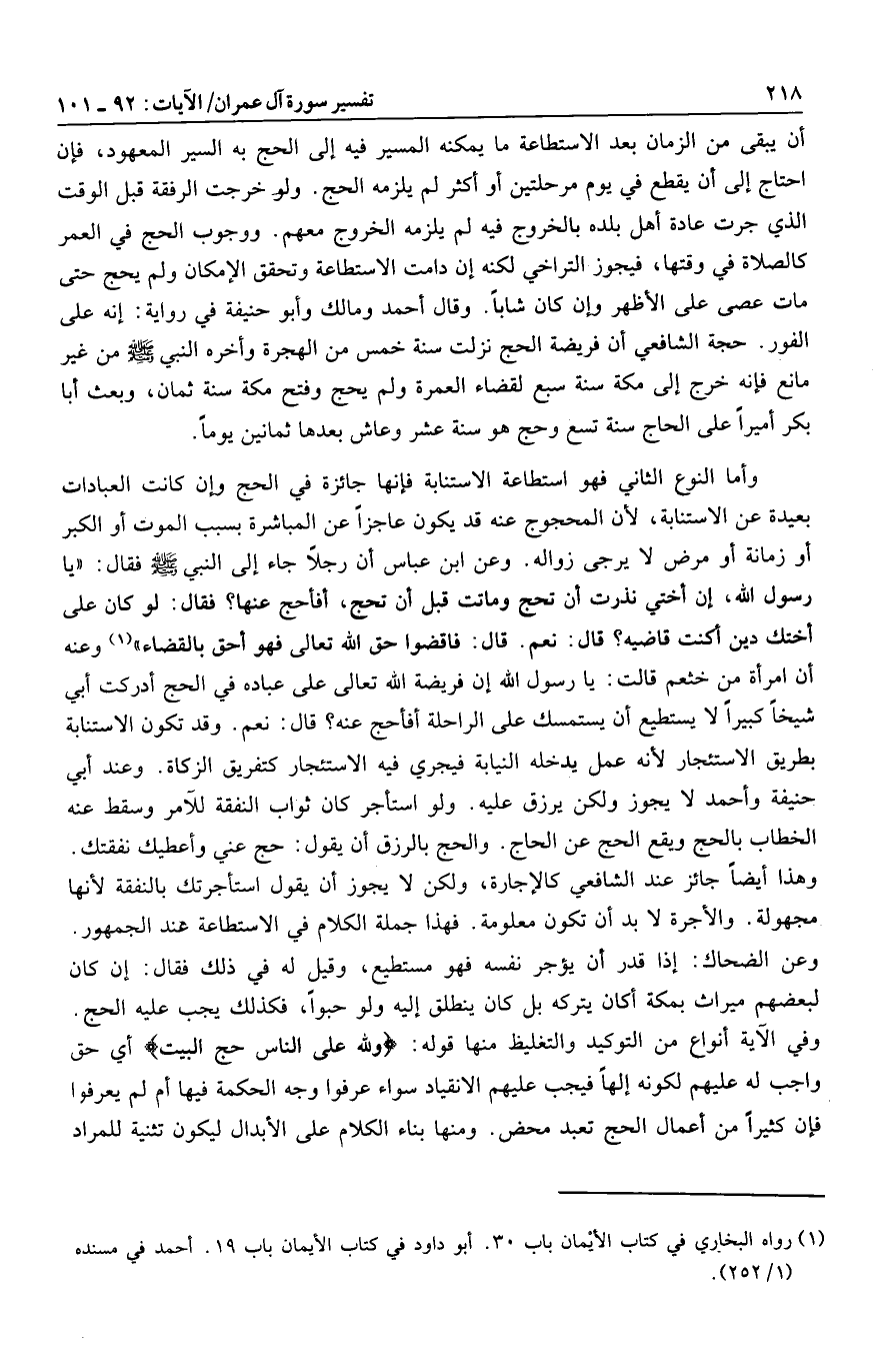 وهذا أيضا جائز عند الشافعي كالإجارة، ولكن لا يجوز أن يقول استأجرتك بالنفقة لأنها مجهولة. والأجرة لا بد أن تكون معلومة. فهذا جملة الكلام في الاستطاعة عند الجمهور.