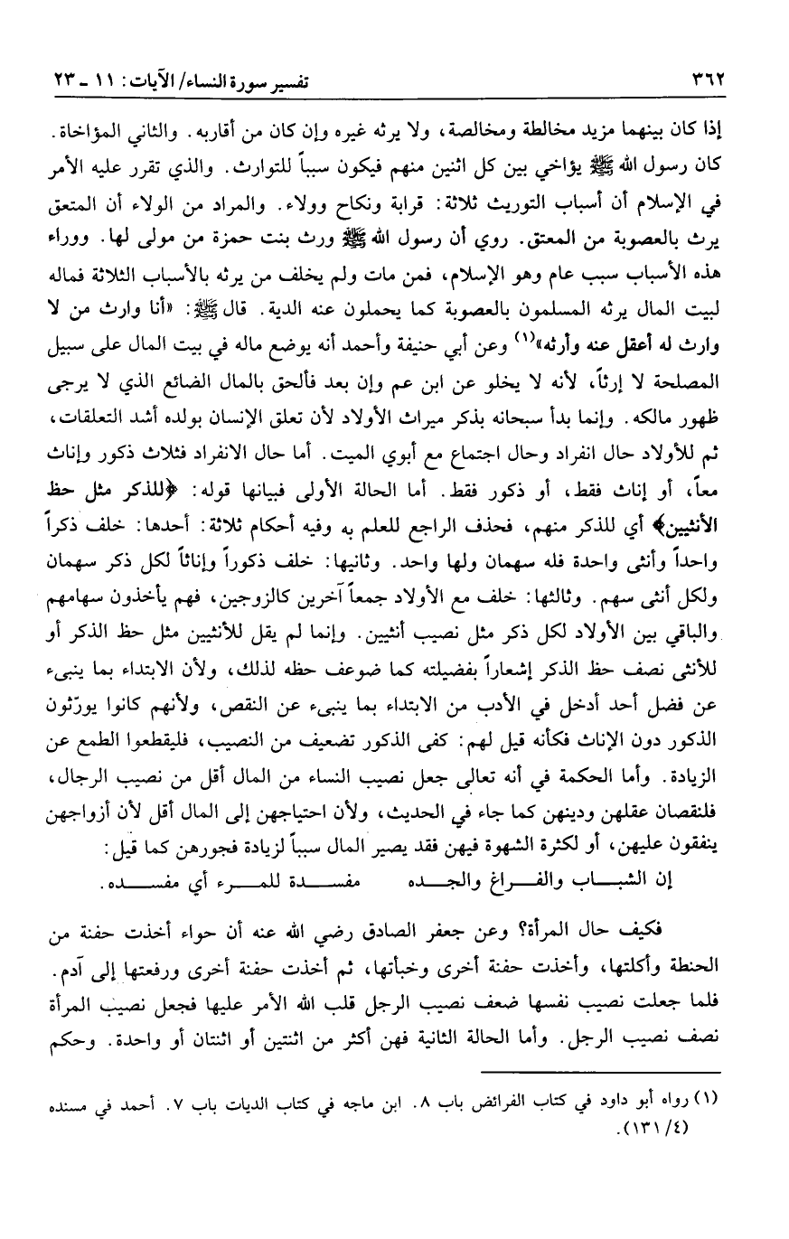 (1) رواه أبو داود في كتاب الفرائض باب 8. ابن ماجه في كتاب الديات باب 7. أحمد في مسنده (4/ 131) .