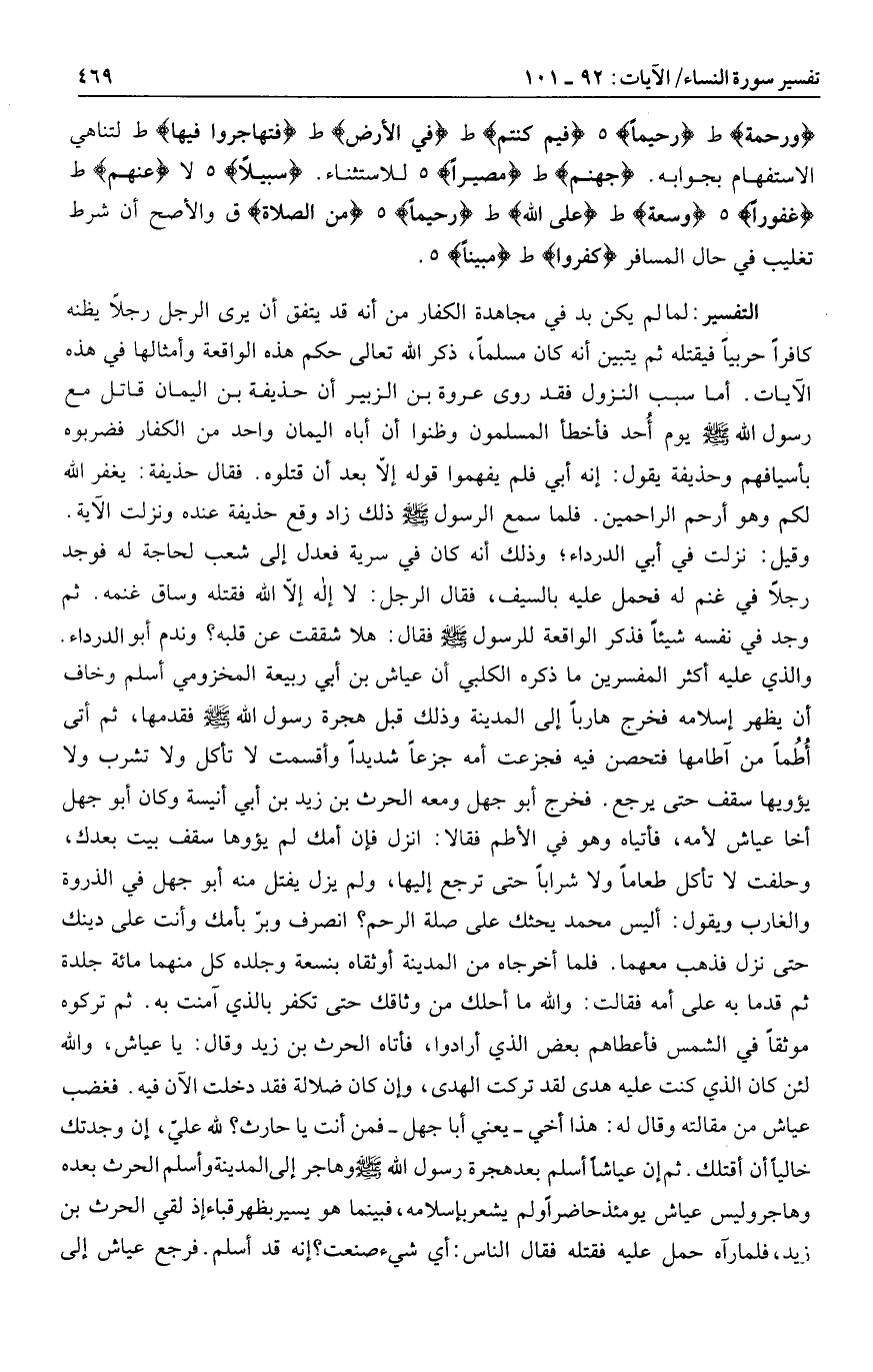 وَرَحْمَةً ط رَحِيماً هـ فِيمَ كُنْتُمْ ط فِي الْأَرْضِ ط فَتُهاجِرُوا فِيها ط لتناهي الاستفهام بجوابه. جَهَنَّمُ ط مَصِيراً هـ للاستثناء. سَبِيلًا هـ لا عَنْهُمْ ط غَفُوراً هـ وَسَعَةً ط عَلَى اللَّهِ ط رَحِيماً هـ مِنَ الصَّلاةِ ق والأصح أن شرط تغليب في حال المسافر كَفَرُوا ط مُبِيناً هـ.