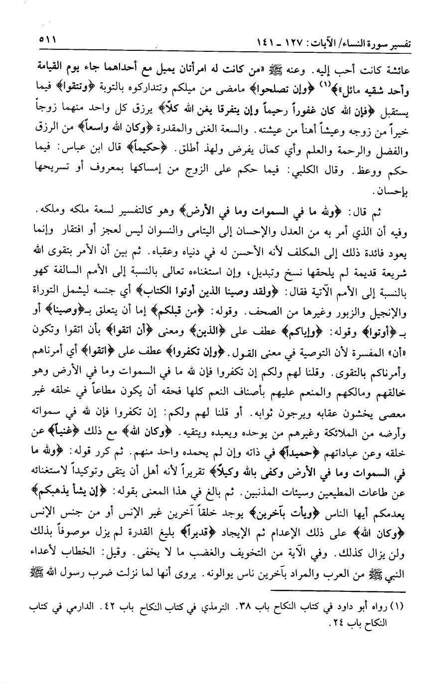 وَإِنْ تُصْلِحُوا ما مضى من ميلكم وتتداركوه بالتوبة وَتَتَّقُوا فيما يستقبل فَإِنَّ اللَّهَ كانَ غَفُوراً رَحِيماً وَإِنْ يَتَفَرَّقا يُغْنِ اللَّهُ كُلًّا يرزق كل واحد منهما زوجا خيرا من زوجه وعيشا أهنأ من عيشته. والسعة الغنى والمقدرة وَكانَ اللَّهُ واسِعاً من الرزق والفضل والرحمة والعلم وأي كمال يفرض ولهذ أطلق. حَكِيماً قال ابن عباس: فيما حكم ووعظ. وقال الكبي: فيما حكم على الزوج من إمساكها بمعروف أو تسريحها بإحسان.