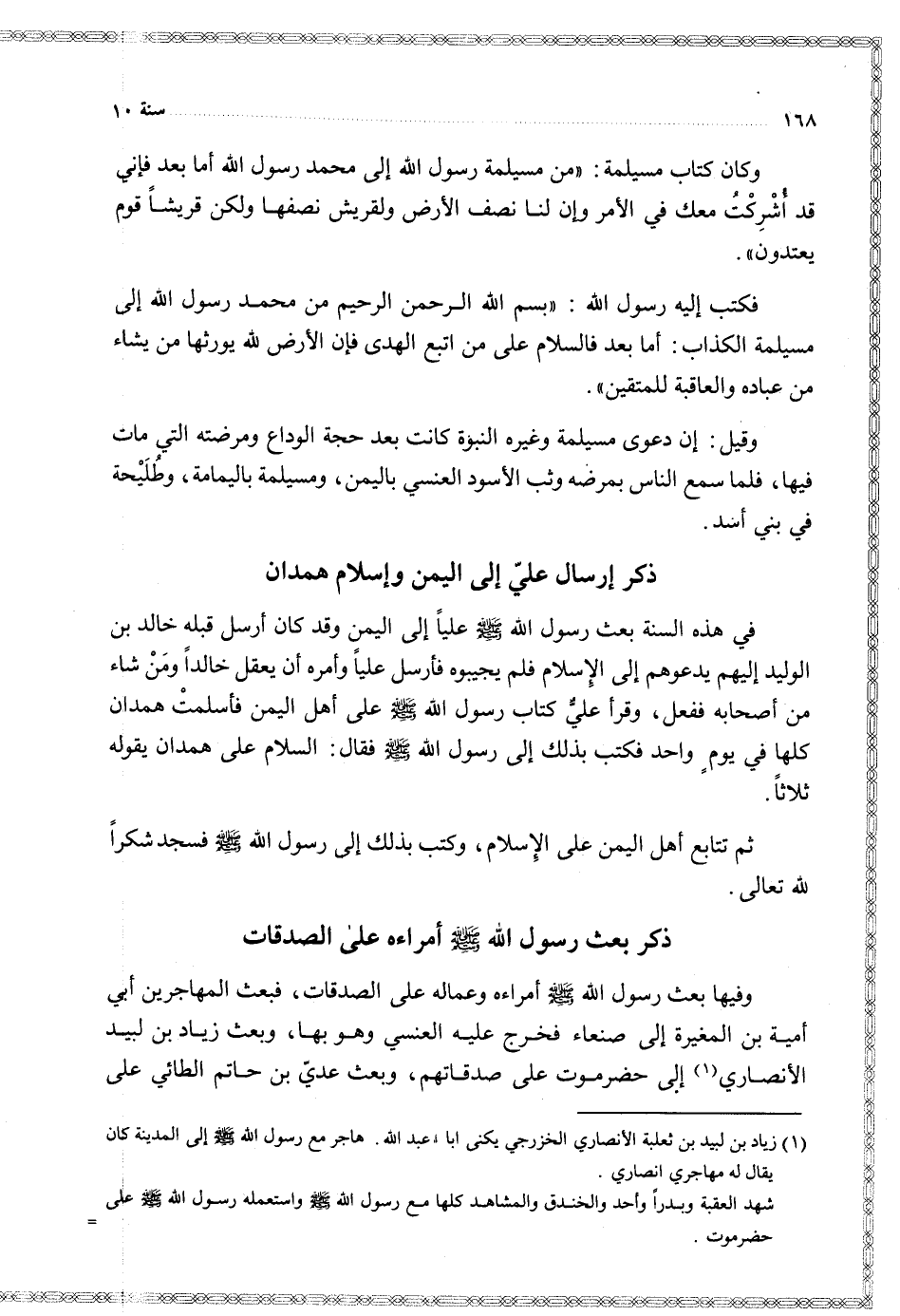 وفيها بعث رسول الله أمراءه وعماله على الصدقات فبعث المهاجرين أبي أمية بن المغيرة إلى صنعاء فخرج عليه العنسي وهو بها وبعث زياد بن لبيد الأنصاري إلى حضرموت على صدقاتهم وبعث عدي بن حاتم الطائي على