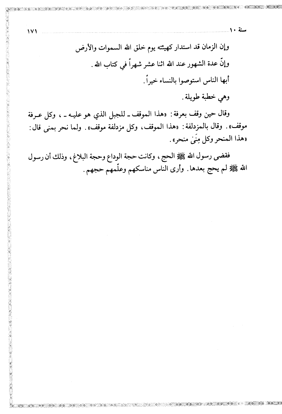 فقضى رسول الله الحج وكانت حجة الوداع وحجة البلاغ وذلك أن رسول الله لم يحج بعدها وأرى الناس مناسكهم وعلمهم حجهم