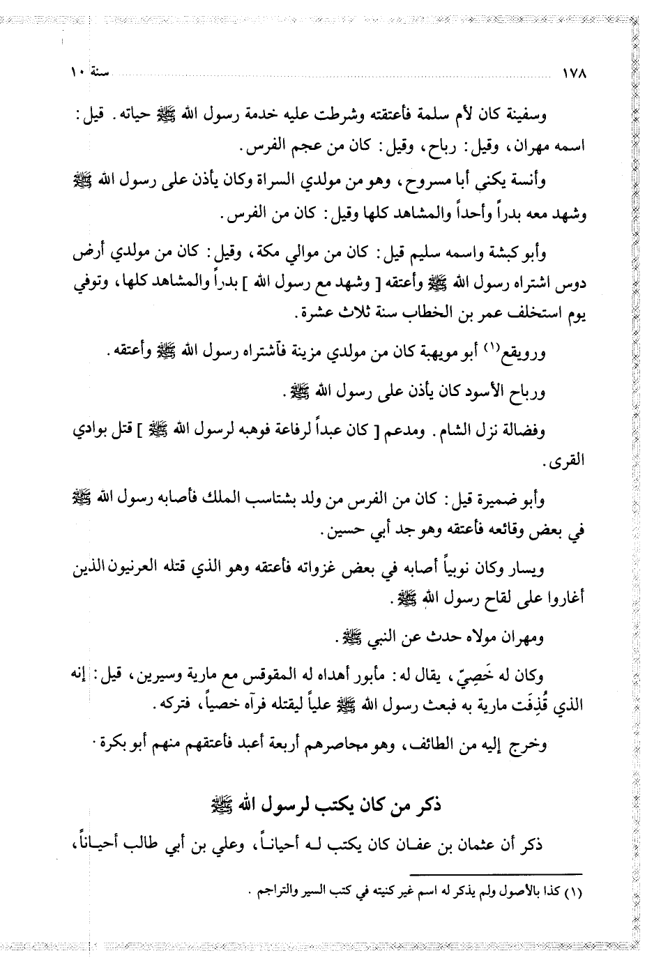 وسفينة كان لأم سلمة فأعتقته وشرطت عليه خدمة رسول الله حياته قيل اسمه مهران وقيل رباح وقيل كان من عجم الفرس