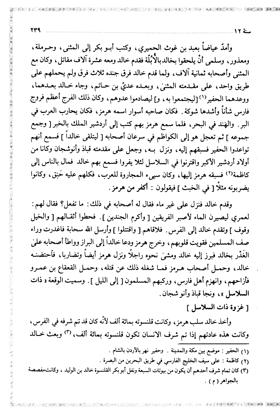 وأخذ خالد سلب هرمز وكانت قلنسوته بمائة ألف لأنه كان قد تم شرفه في الفرس وكانت هذه عادتهم إذا تم شرف الإنسان تكون قلنسوته بمائة ألف وبعث خالد