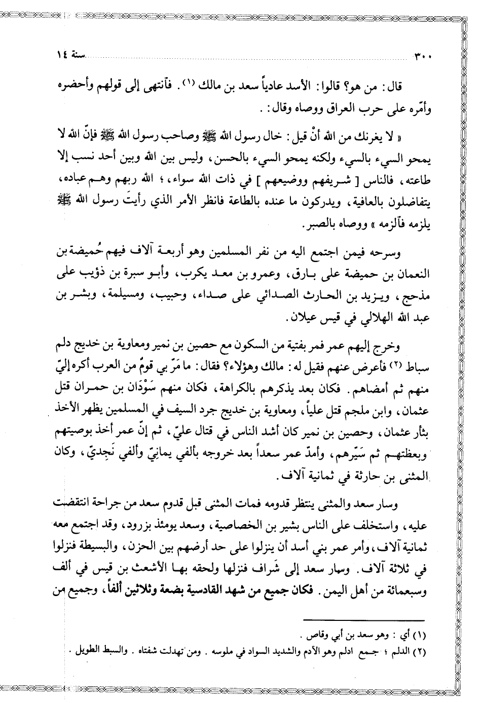 قال من هو قالوا الأسد عاديا سعد بن مالك فانتهى إلى قولهم وأحضره وأمره على حرب العراق ووصاه وقال
