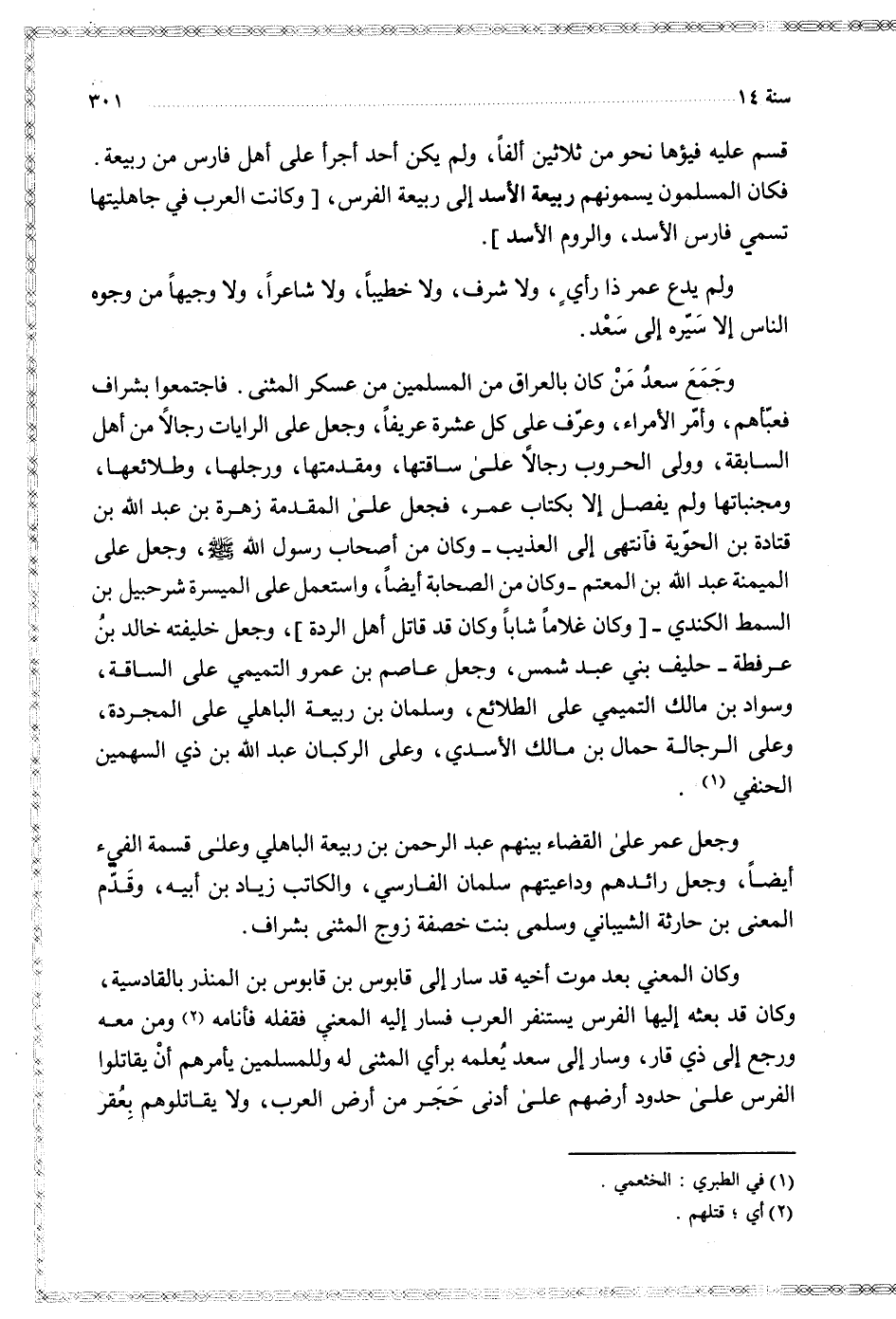 ولم يدع عمر ذا رأي ولا شرف ولا خطيبا ولا شاعرا ولا وجيها من وجوه الناس إلا سيره إلى سعد