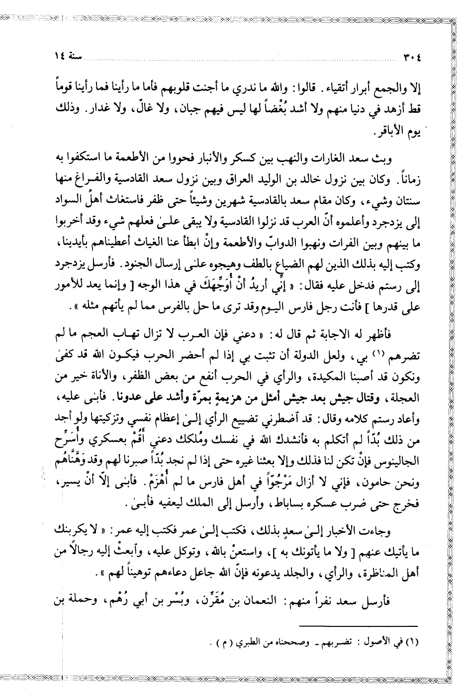وجاءت الأخبار إلى سعد بذلك فكتب إلى عمر فكتب إليه عمر لا يكربنك ما يأتيك عنهم ولا ما يأتونك به واستعن بالله وتوكل عليه وابعث إليه رجالا من أهل المناظرة والرأي والجلد يدعونه فإن الله جاعل دعاءهم توهينا لهم