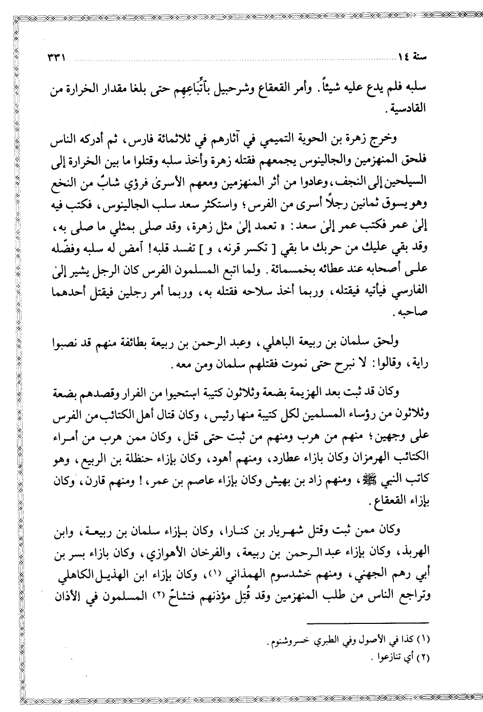 سلبه فلم يدع عليه شيئا وأمر القعقاع وشرحبيل باتباعهم حتى بلغا مقدار الخرارة من القادسية