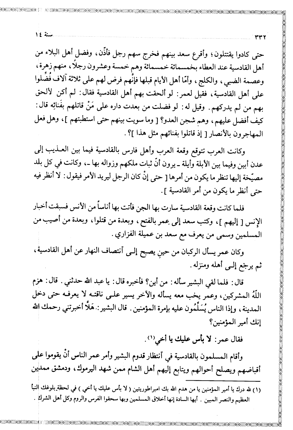 وكان عمر يسأل الركبان من حين يصبح إلى انتصاف النهار عن أهل القادسية ثم يرجع إلى أهله ومنزله