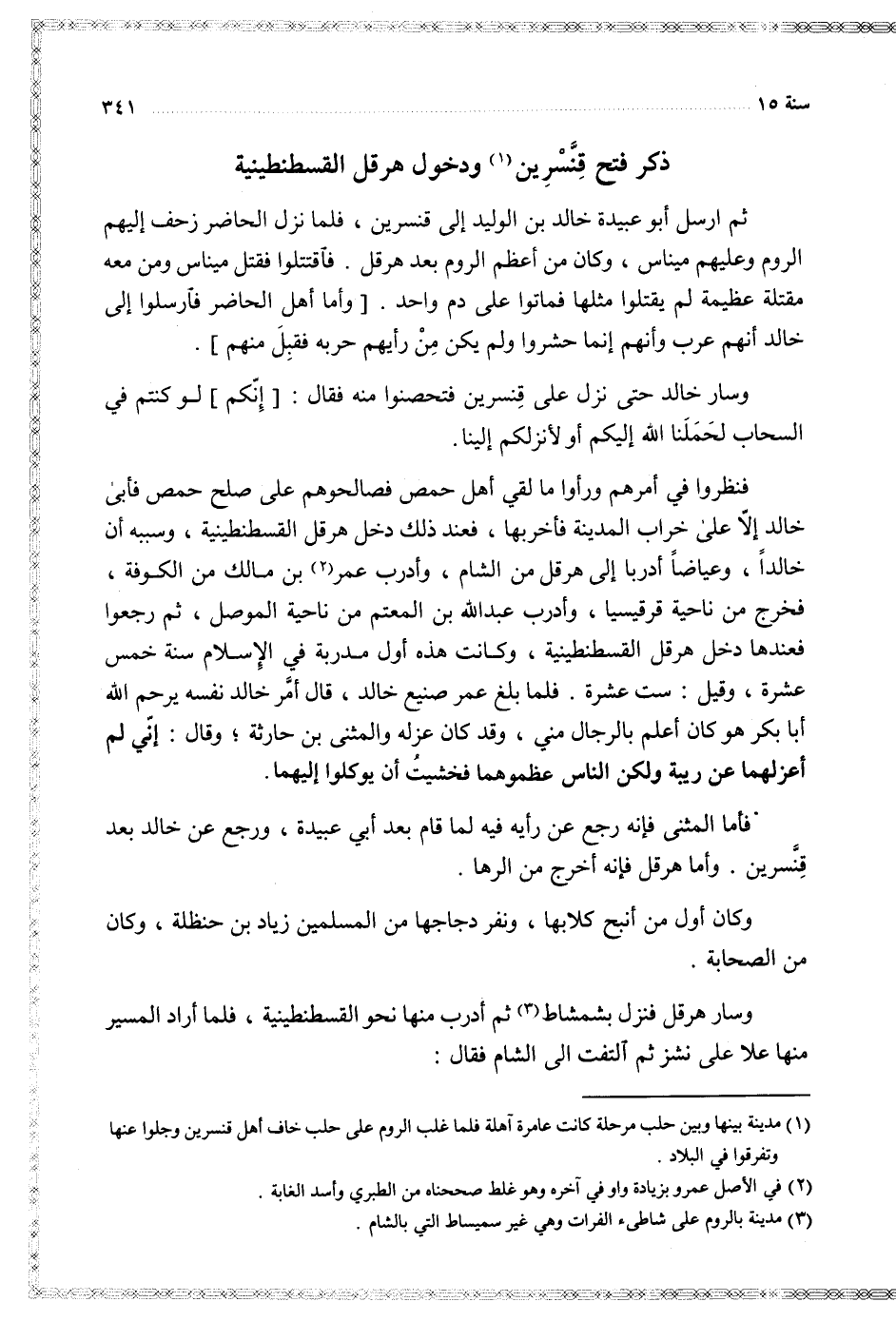 $ ذكر فتح قنسرين ودخول هرقل القسطنطينية $