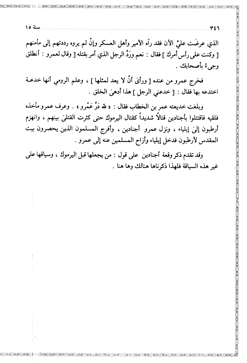 وبلغت خديعته عمر بن الخطاب فقال لله در عمرو وعرف عمرو مأخذه فلقيه فاقتتلوا بأجنادين قتالا شديدا كقتال اليرموك حتى كثرت القتلى بينهم وانهزم أرطبون إلى إيلياء ونزل عمرو أجنادين وأفرج المسلمون الذين يحاصرون بيت المقدس لأرطبون فدخل إيلياء وأزاح المسلمين عنه إلى عمرو