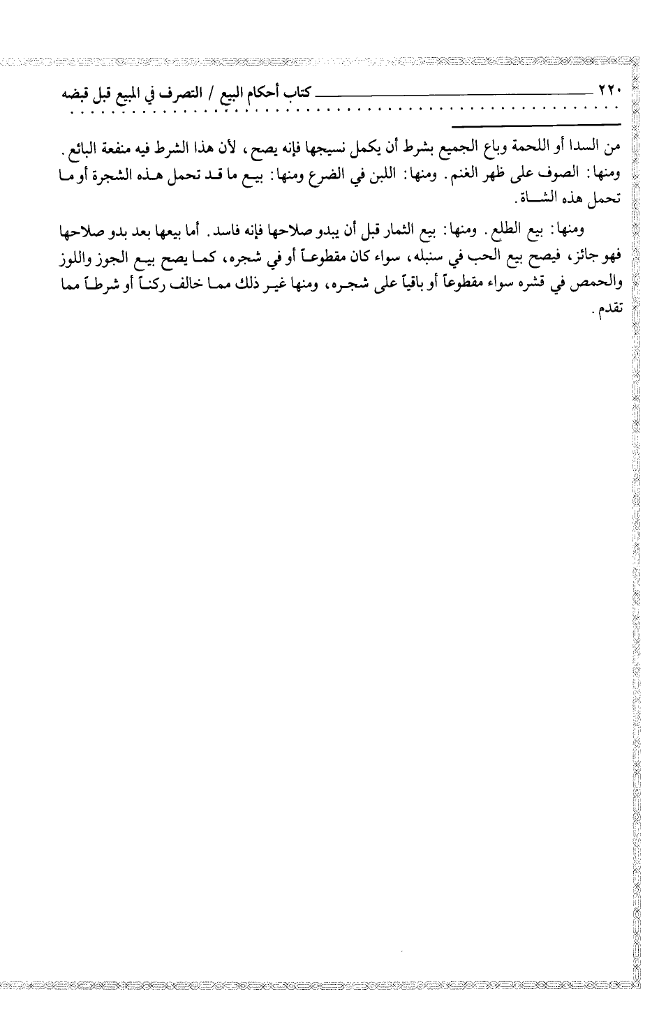 من السد أو اللحمة وباع الجميع بشرط أن يكمل نسيجها فإنه يصح، لأن هذا الشرط فيه منفعة البائع. ومنها: الصوف على ظهر الغنم. ومنها: اللبن في الضرع ومنها: بيع ما قد تحمل هذه الشجرة أو ما تحمل هذه الشاة.