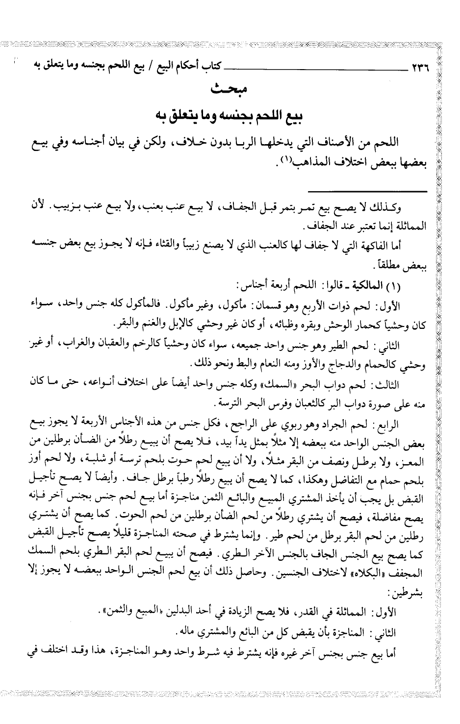 مبحث بيع اللحم بجنسه وما يتعلق به