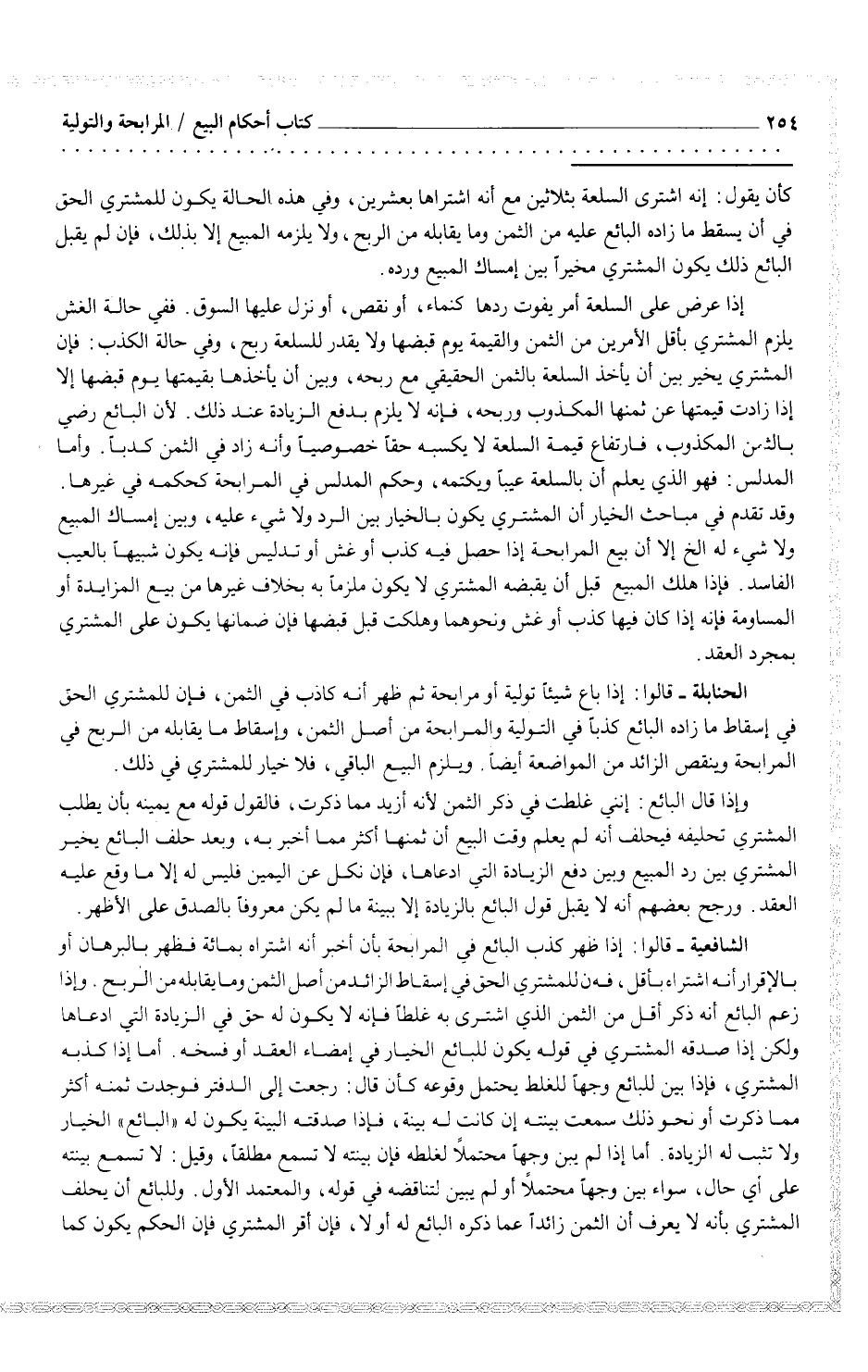الحنابلة - قالوا: إذا باع شيئاً تولية أو مرابحة ثم ظهر أنه كاذب في الثمن، فإن للمشتري الحق في إسقاط ما زاده البائع كذباً في التولية والمرابحة من أصل الثمن، وإسقاط ما يقابله من الربح في المرابحة وينقص الزائد من المواضعة أيضاً. ويلزم البيع الباقي، فلا خيار للمشتري في ذلك.