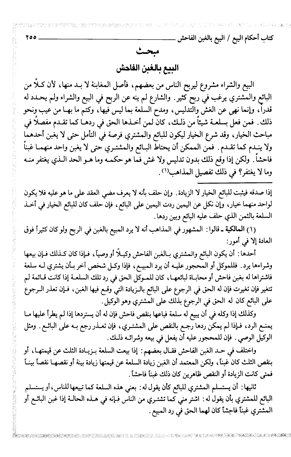 واختلف في حد الغبن الفاحش فقال بعضهم: إذا بيعت السلعة بزيادة الثلث عن قيمتها، أو بنقص الثلث كان غبناً، ولكن المعتمد أن الغبن زيادة السلعة عن قيمتها زيادة بينه أو نقصها نقصاً بيناً فمتى كانت الزيادة أو النقص ظاهرين كان ذلك غبناً فاحشاً.