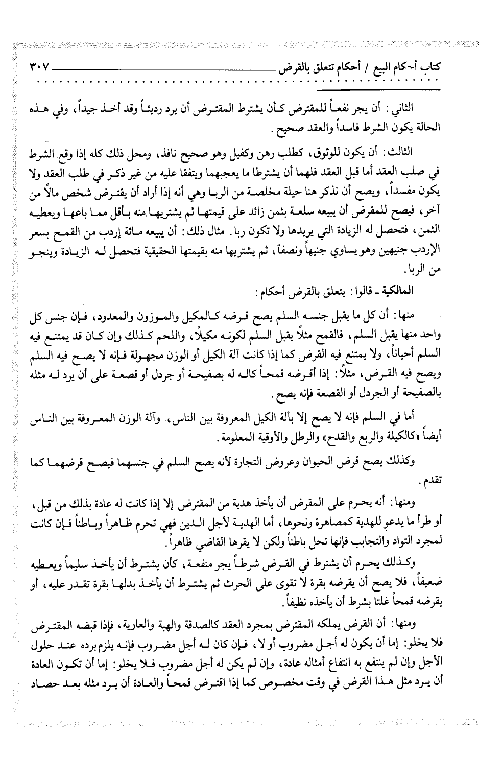 المالكية - قالوا: يتعلق بالقرض أحكام: