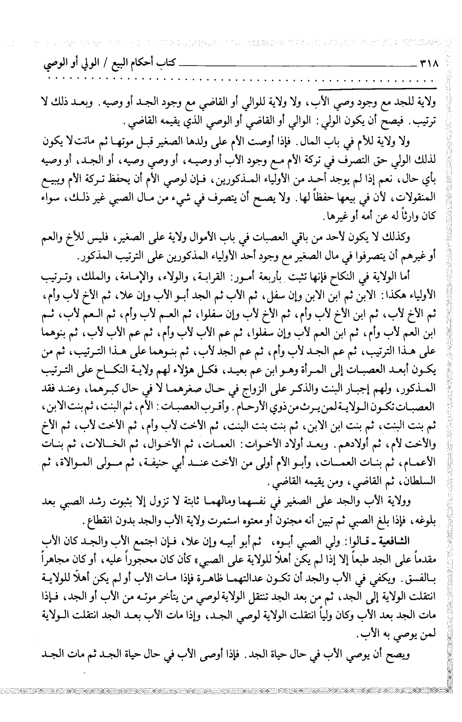 ولاية للجد مع وجود وصي الأب، ولا ولاية للوالي أو القاضي مع وجود الجد أو وصيه. وبعدذلك لا ترتيب. فيصح أن يكون الولي: الوالي أو القاضي أو الوصي الذي يقيمه القاضي.