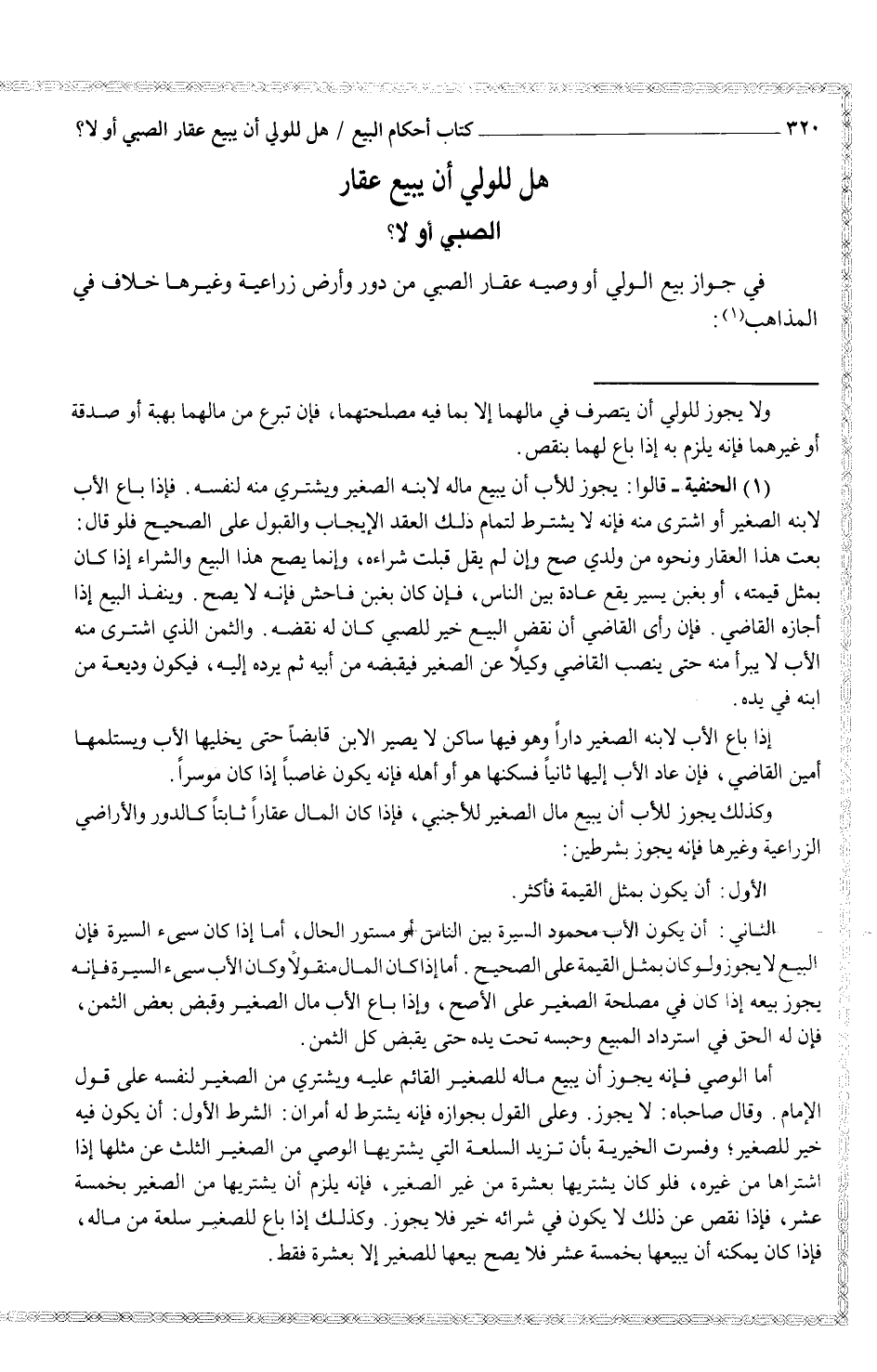 هل للولي أن يبيع عقار الصبي أو لا؟