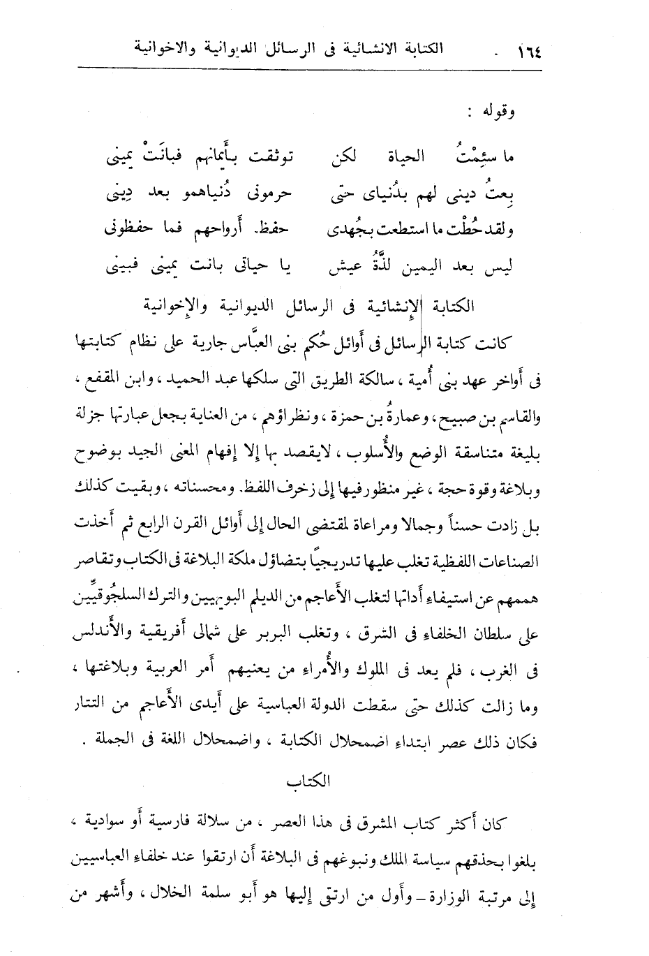 بلغ نفوذه وسلطانه مبلغاً زاحم فيه الخليفة يحيى بن خالد بن برمك وابناه جعفر والفضل، ثم محمد بن الزيات في زمن المعتصم والواثق. وكان كتاب الأندلس والمغرب أكثرهم من سلائل عربية. ومن أشهر كتاب هذا العصر في الشرق ابن المقفع، ويحيى بن خالد بن برمك. وابناه: جعفر والفضل، وإسماعيل بن صبيح، وعمرو بن مسعدة، وأحمد بن يوسف، وابن الزيات. والحسن بن وهب وعلي بن الفرات، وابن مقلة، وابن العميد، والصاحب بن عباد، وأبو بكر الخوارزمي، والبديع، والصابي، والعماد الكاتب، والقاضي الفاضل.