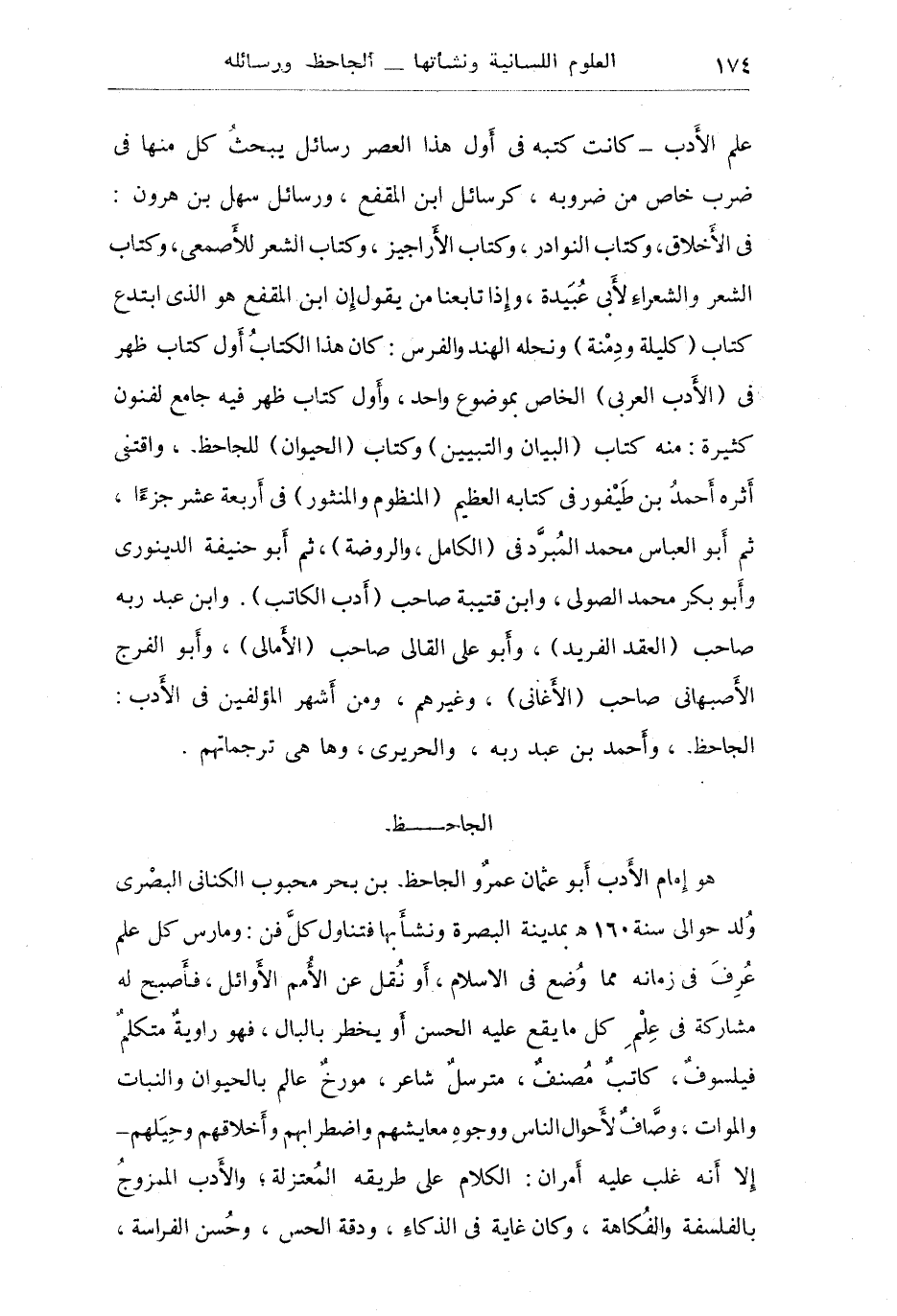 الفراسة: وكان سمحاً جواداً كثير المواساة لأخوانه: وكان على دمامة خلقه وتناقض خلقه خفيف الروح فكه المجلس غاية في الظرف وطيب الفكاهة وحلاوة الكلام، وهو على الجملة أحد أفذاذ العالم وإحدى حجج اللسان العربي، وأقام الجاحظ أكثر عمره بالبصرة يعيش معيشة الأدباء والعلماء محسوباً لولاتها وأعيانها محبواً منهم بالعطايا والمنح بما يصنفه لهم من الكتب المتفقه مع أهوائهم المختلفة، وكان كثير الانتجاع للخلفاء ببغداد وسر من رأى حتى فلج بالبصرة وبقي مفلوجاً بها مدة إلى أن انتقل إلى بغداد فمات بها ودفن بمقبرة الخيزران (أم الرشيد) سنة 255 هـ، وله أكثر من مائتي كتاب.