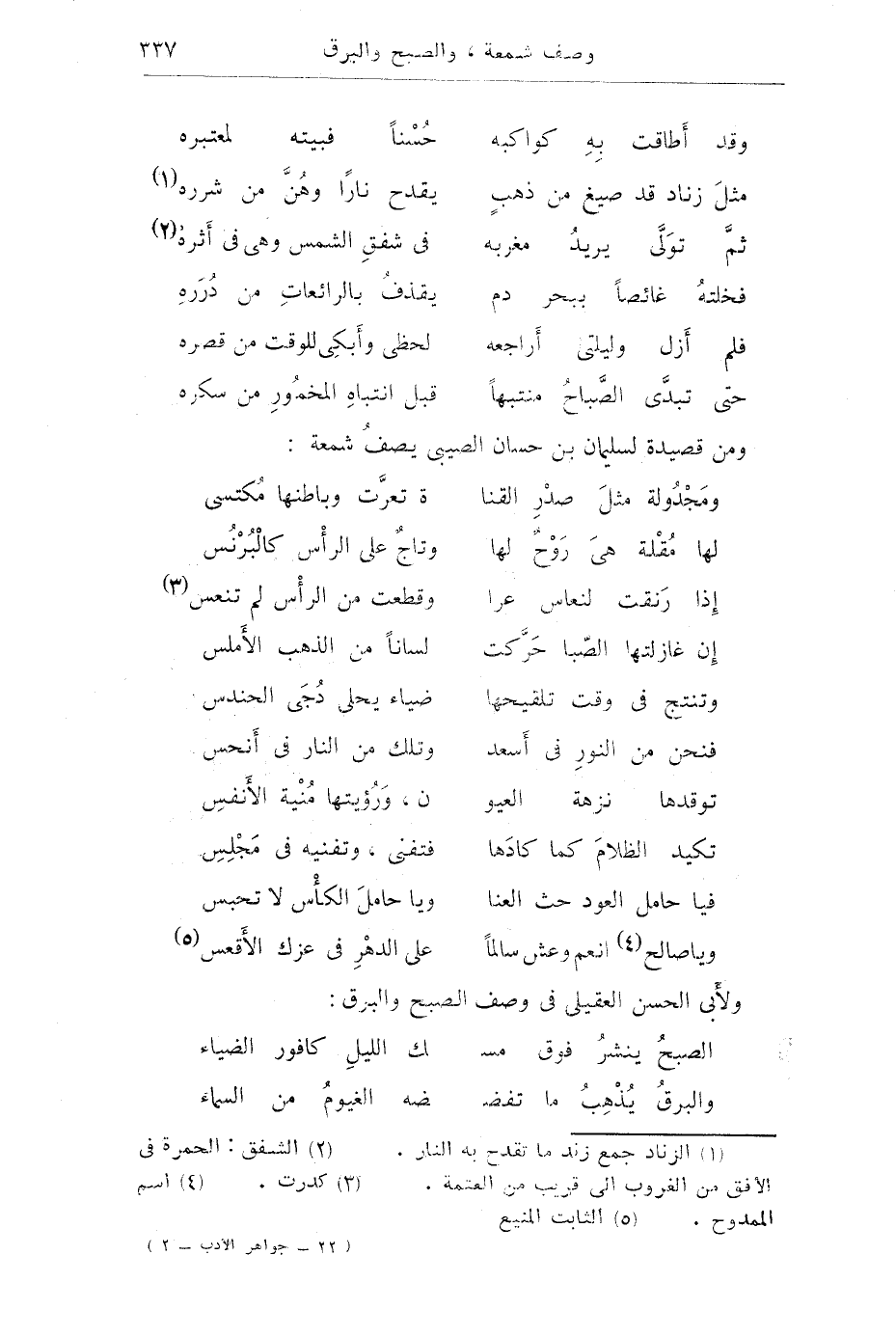 وللسري بن أحمد الكندي في وصف الفجر من قصيدة