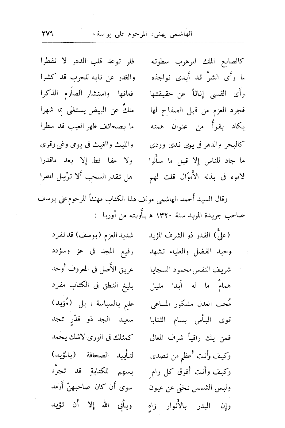 وقال محمد حافظ بك إبراهيم مهنئاً أبناء وطنه بالعام الهجري