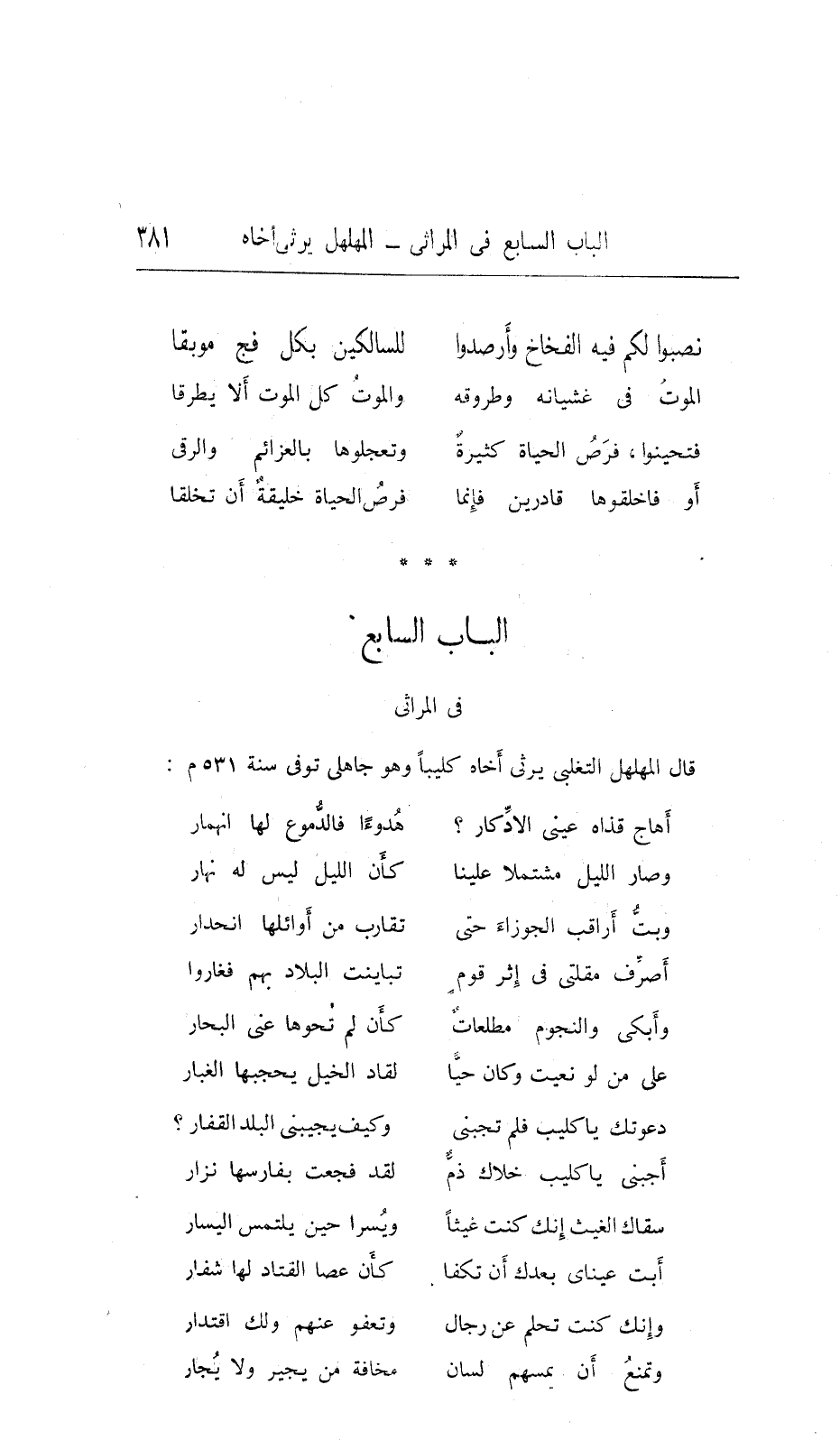 كأنّي إذ نعى النّاعي كليباً ... تطاير بين جنبيّ الشّرار