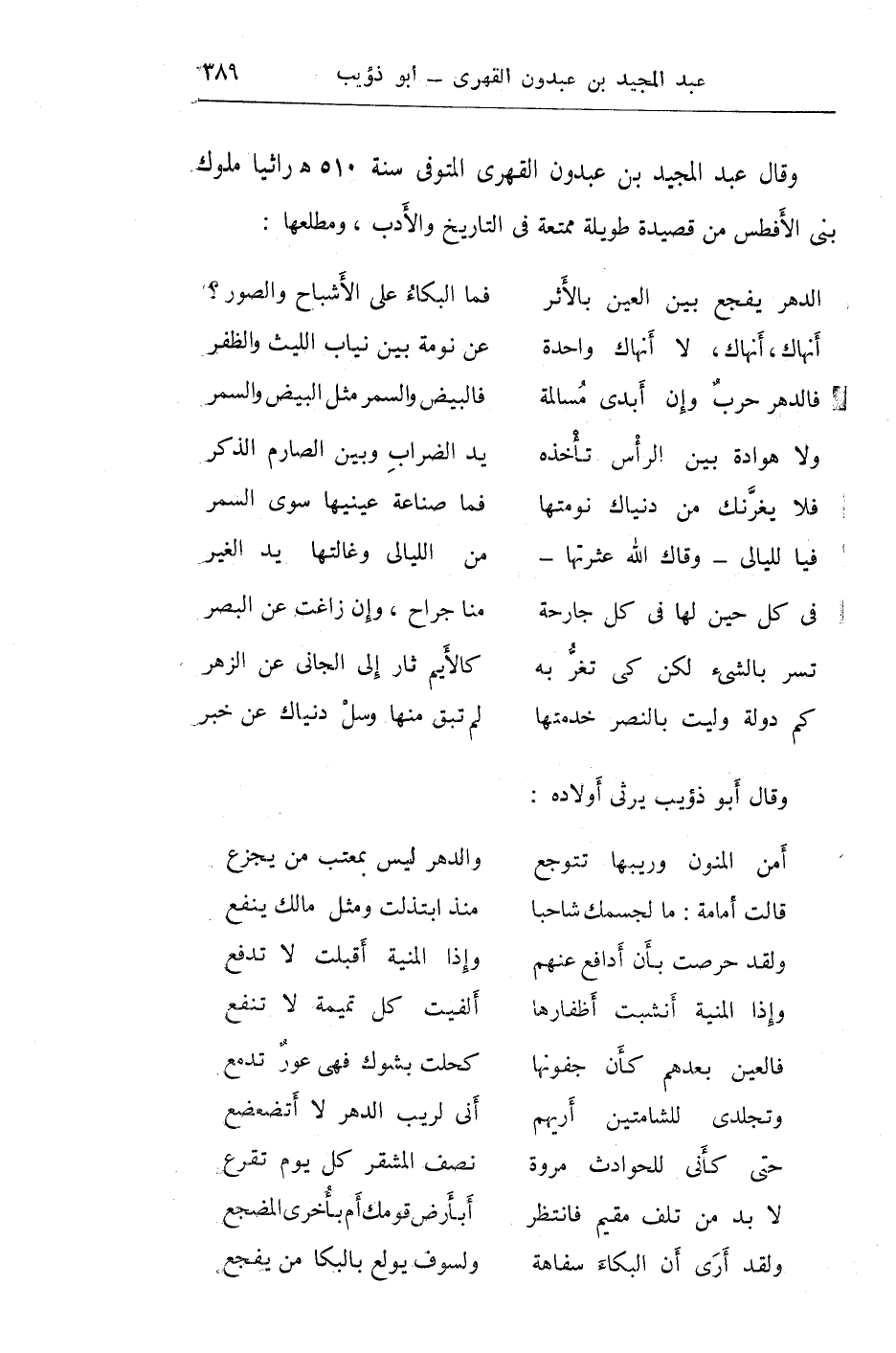 وقال أبو الأنباري المتوفى سنة 328 هـ? يرثي أبا طاهر بن بقية وزير عز الدولة لما قتل وصلب وهي من أعظم المراثي ولم يسمع بمثلها في مصلوب حتى أن عضد الدولة الذي صلبه تمنى لو كان هو المصلوب وقيلت فيه.