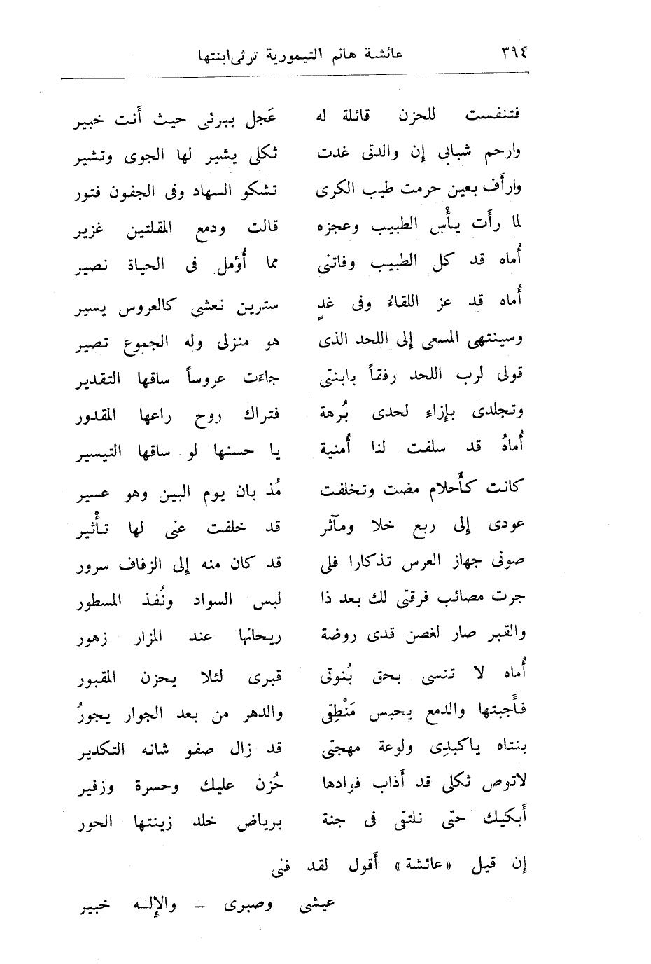 وقالت المرحومة ملك حفني ناصف ترثي عائشة هانم تيمور